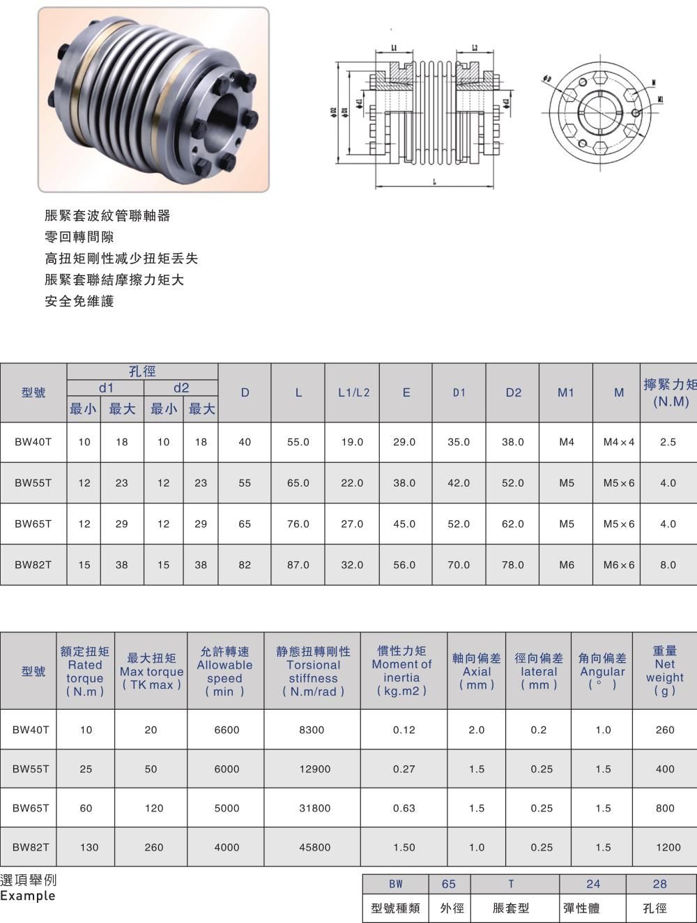 產品名稱:BW-T 波紋管聯軸器