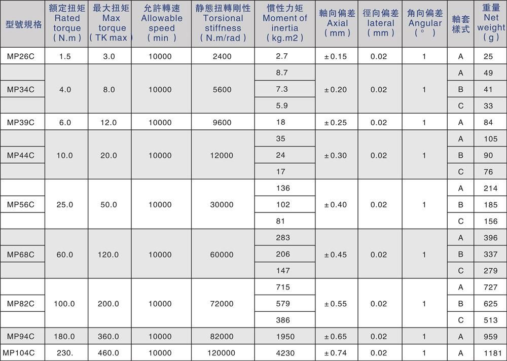 產品名稱:MP-C 不銹鋼彈片聯軸器