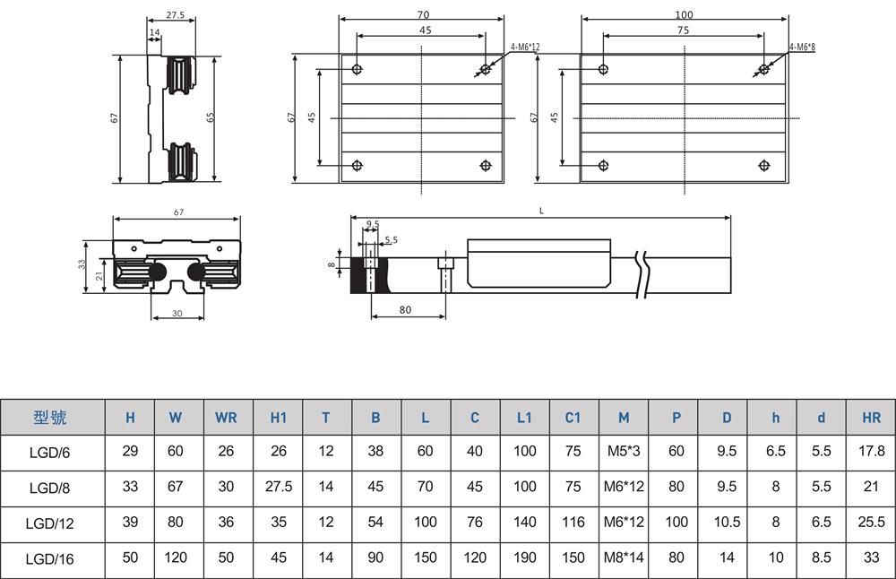 產品名稱:LGD雙軸心滾輪直線導軌
