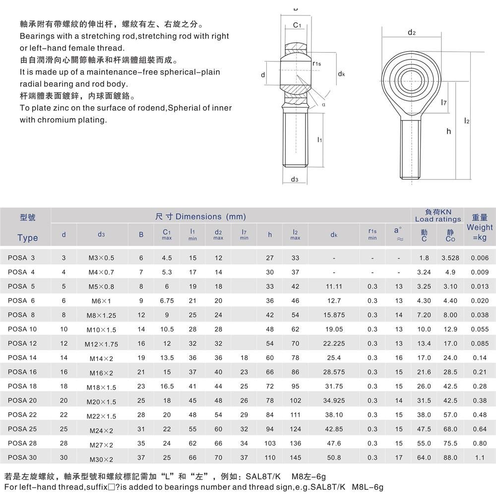 產(chǎn)品名稱:POSA外螺紋自潤(rùn)滑桿端關(guān)節(jié)軸承